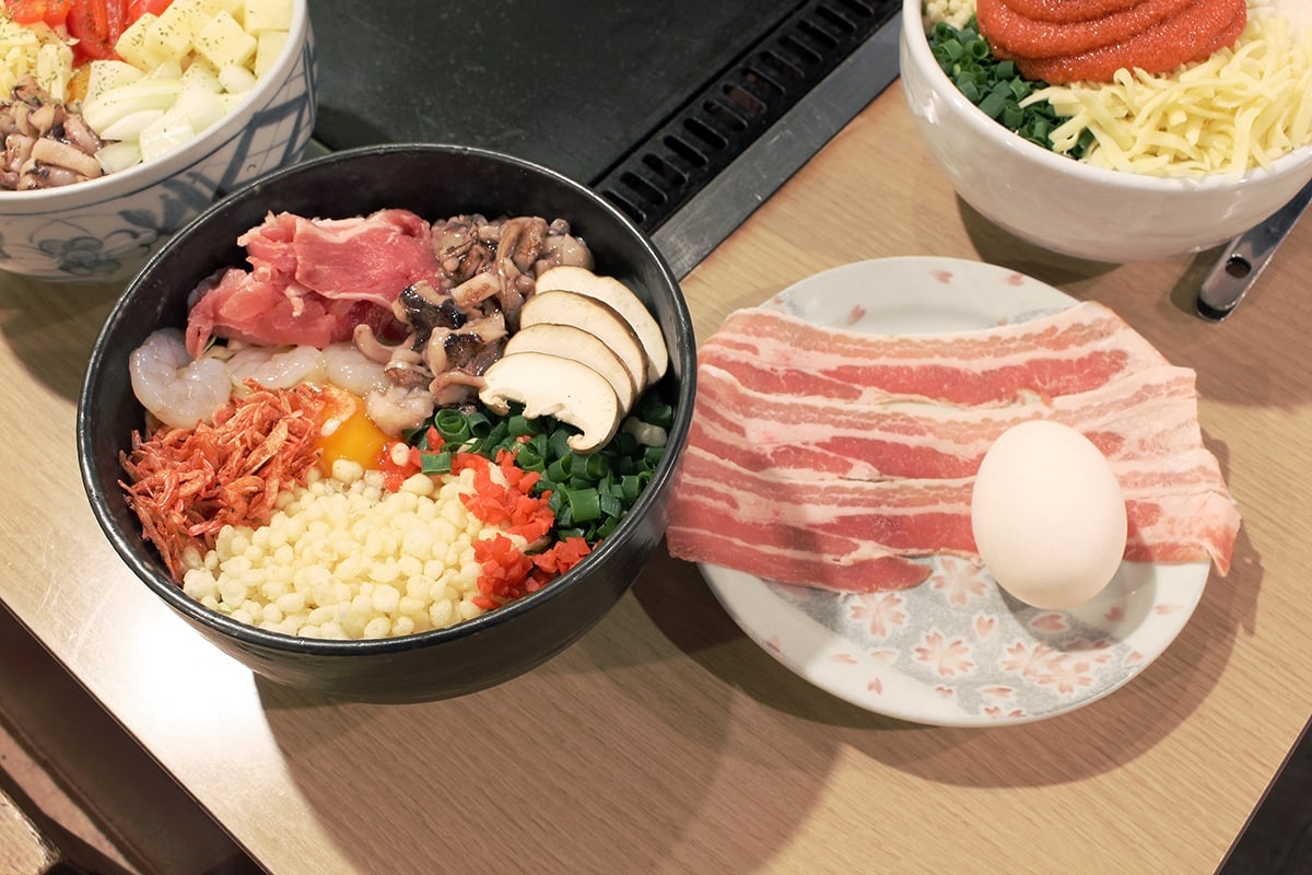海外の観光客から、オモハラの街に集まる若者たちまで虜にするのが、オープン以来の名物「さくら焼き」。桜海老、海老、豚肉、イカゲソ、しいたけ、豚バラ肉、卵といった豊富な具材による食感と、こだわりの出汁による王道のおいしさこそが、不動のメニューたる所以と納得。