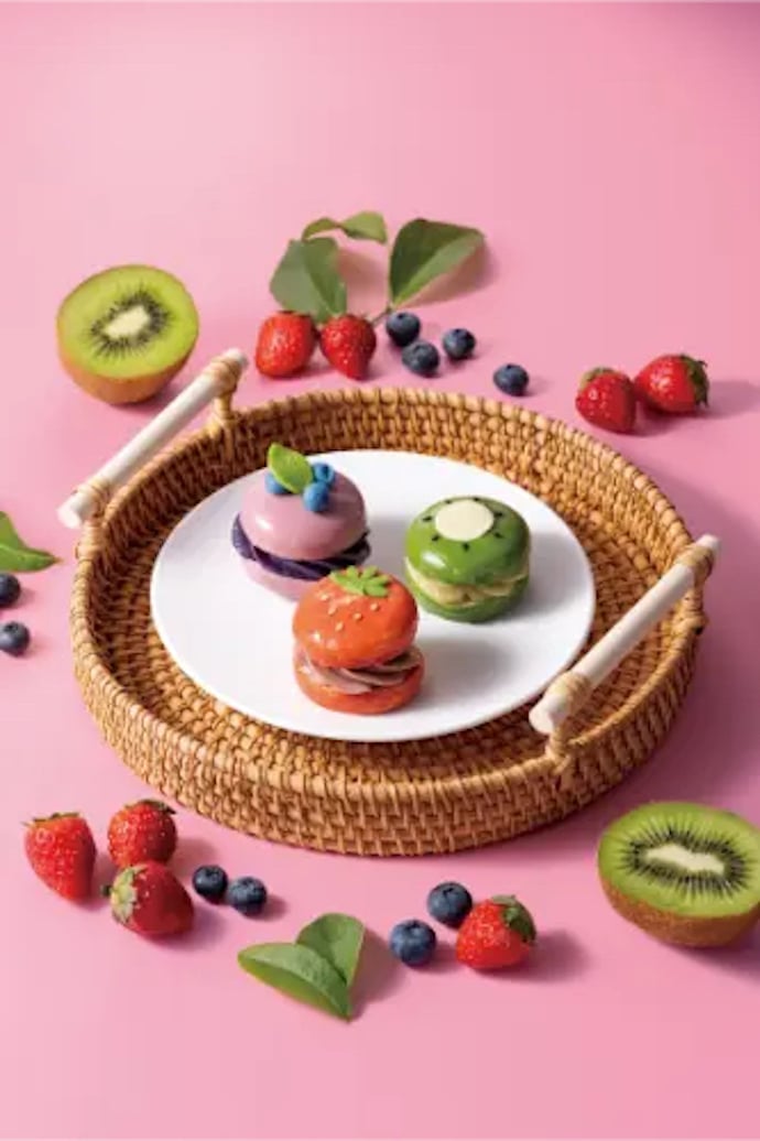 ショコラティエが店頭で手作りする「ゴディバ マカロン フルーツバスケット」(各 税込1728円)は、フルーツをかたどった“かわいすぎるマカロン”です。
