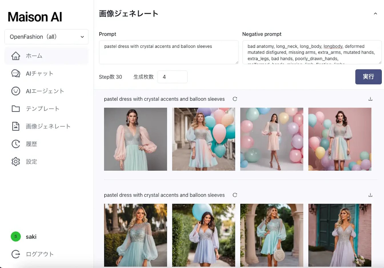 そのなかで、近年になって画像生成AIである「Stable Diffusion」や「Midjourney」などが登場するとともに、文章生成AI「ChatGPT」が発表されるなど、一気にマス向けのAI活用が広がりを見せてきました。そこで、ファッション業界向けにAIを応用する形として「Maison AI」を開発しました。