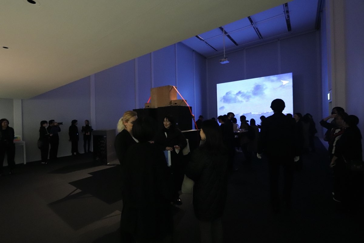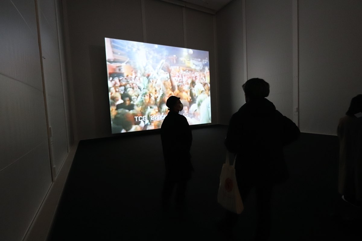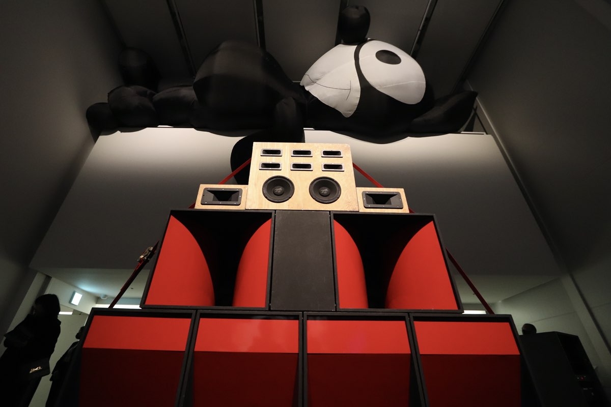 《Fiorucci Made Me Hardcore(10周年リマスター版)》はマーク・レッキーがインターネット以前から各地より蒐集した30年分の映像を、15分に編集した作品。そこにはフーリガンやレイヴカルチャーの臨場感あふれる様子が生々しく映し出される。対に配置されたサウンドシステムからの音響も抜群で、まるでUKカルチャー史に没入しているかのような感覚だ。このサウンドシステムも自作で、UKのレゲエ・サウンドシステムカルチャーへのオマージュが捧げられているという。