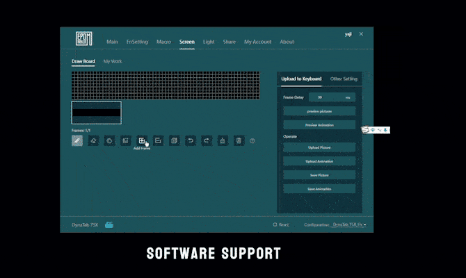 ユーザーは画面の光パターンやアニメーションを自身で設定することが可能。お気に入りのアニメーション効果を自由にデザインしたり、描いたり、画面に直接アップロードしたりと、毎日のタイピングルーティンに遊び心をプラスできる。