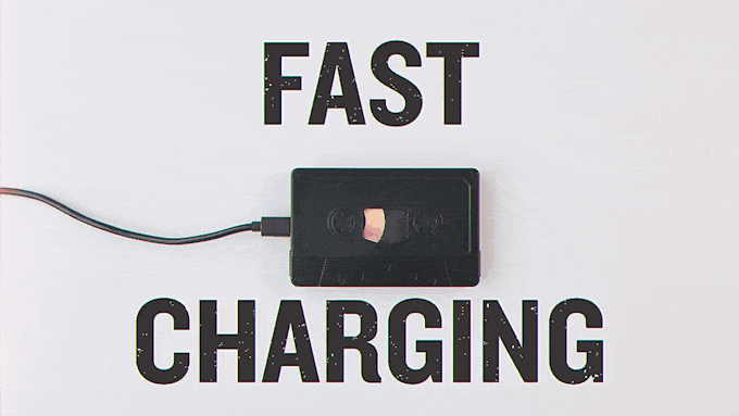 FlashTapeは、カセットテープ風のデザインを施した急速充電器。保管用のケースとしてカセットテープボックスやステッカーが付属するため、まるで“本物”のカセットテープを携帯しているような気分を味わえるだろう。