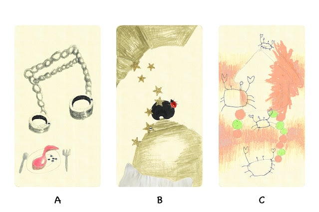 下のA,B,Cの3枚のカードの中から、なんとくなく直感でピンとくるものを選んでみてください。