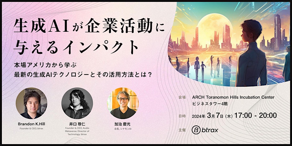 そこで今回 “ARCH Toranomon Hills Incubation Center “にて「生成AIが企業活動に与えるインパクト」を開催します!