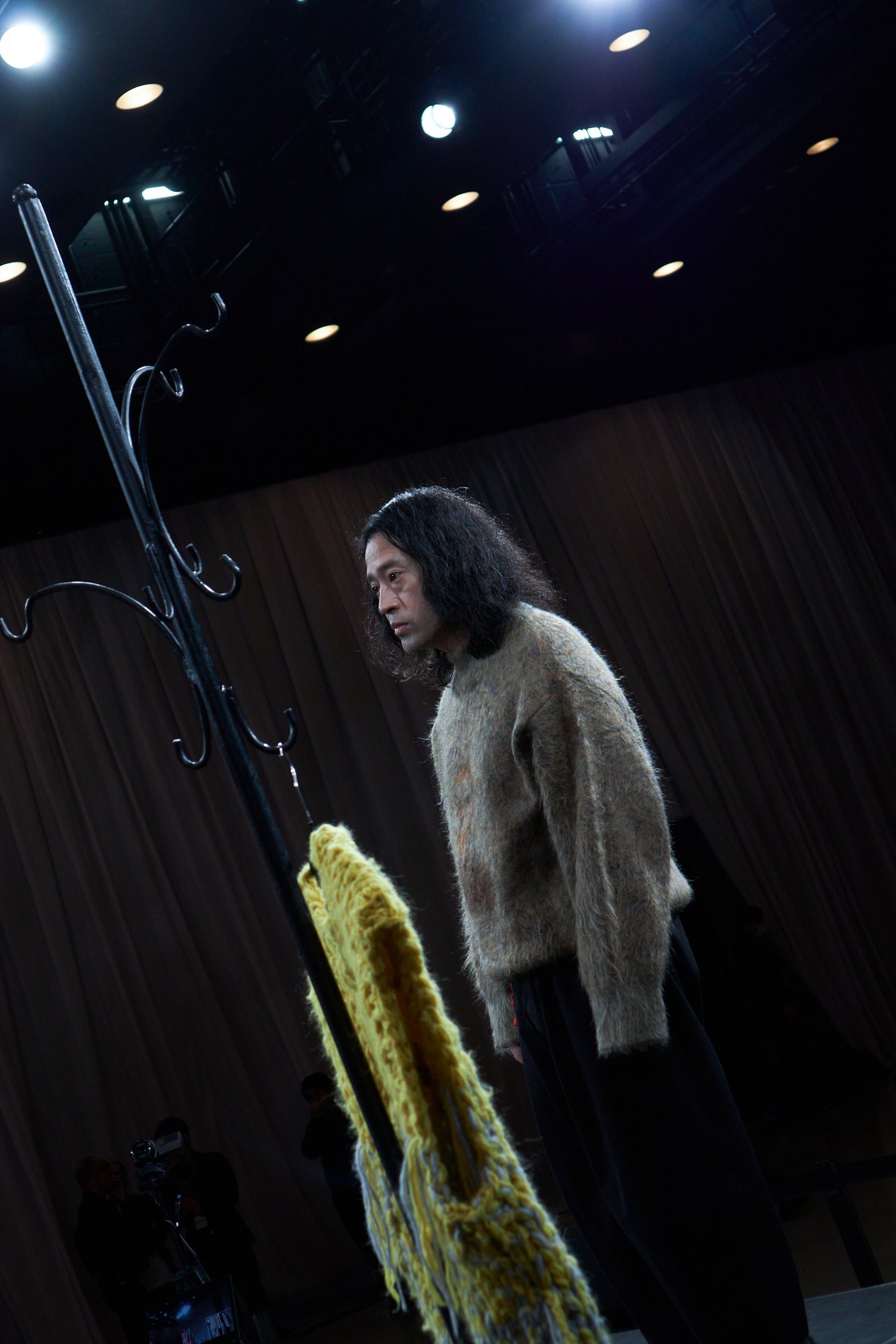 颯爽と書き出したが、正直に白状する。私は具志堅 幸太の抽斗を、ちと侮っていた。新作発表会(ライブと云った方が通りが好いだろう)が済むや、私は、自分の背後に回って己が身を蹴倒してしまいたくなった。少しく酔っていたとて、甘な自分が恥ずかしくなった。開始早々、嗚呼、これはお笑いのパフォーマンスかと、端よりしらけていた自分は何奴だったのか。だから侘びの印と云っては口幅ったいけれども、せめてもの一言を本人に投げ掛けておかねば、売文稼業の渡世の道に外れることになる。泥酔していてもそれがエチケットであろうと、早くも私は気を取り直していた。彼は、自らの手仕事に恃む創作手法を前に進める質なだけに、発表点数に限りがあるし、自ずと単品志向の強いブランドだけに、通り一遍のショーイングは難しい。大方、気の利いた展示形式になるのだろうと高を括っていたのだが、蓋を開けてみたら違った。違った。違った。TOKYO FASHION AWARD 2024メンズ部門を受賞し、パリのファッションウイーク会期中の展示会に参加。具志堅は東京でのデビューを、奇抜な演出で見せた。見せた。見せた(ボキャブラリーが足りないところは容赦して下さい)。
