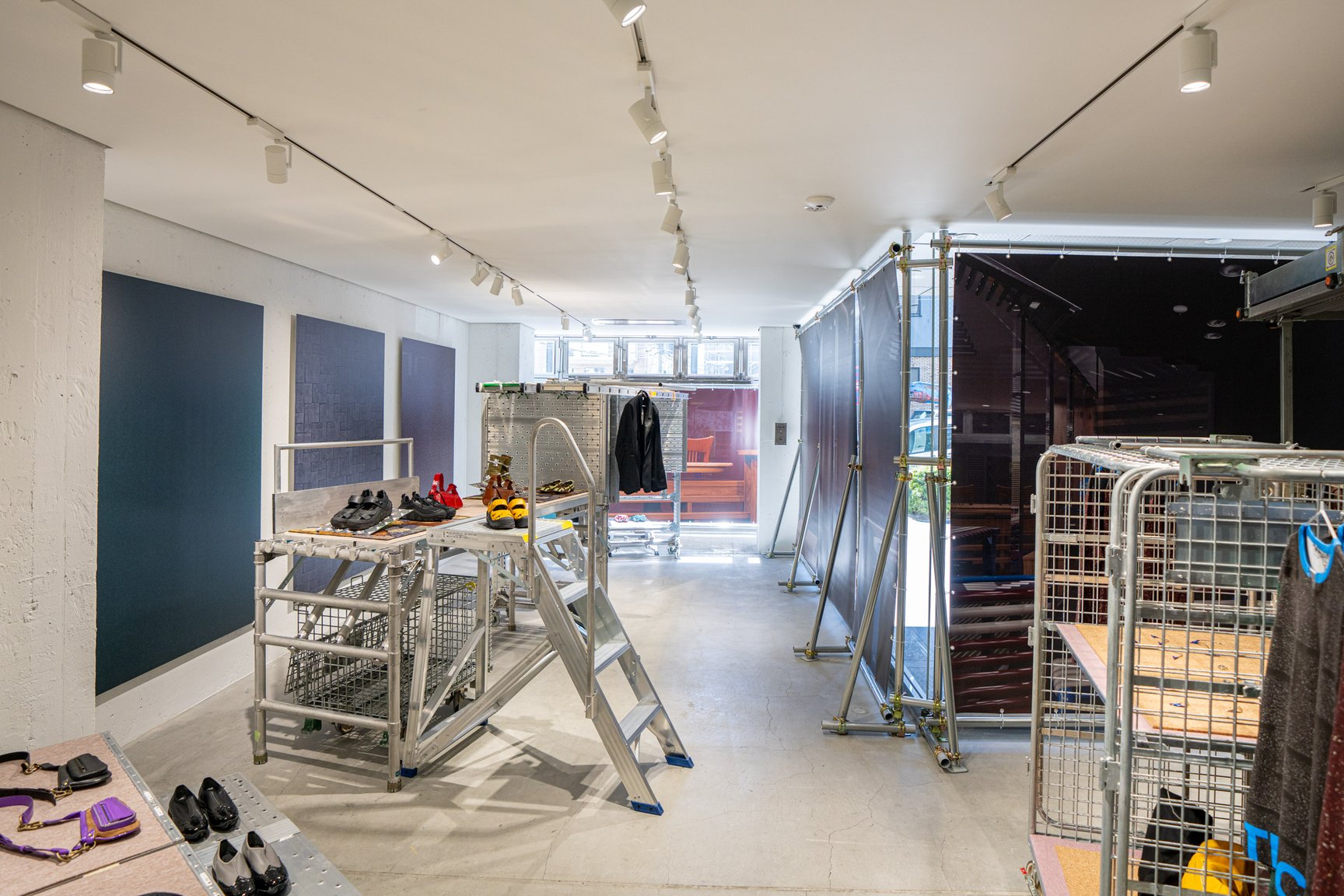 同ブランドの世界初店舗となる「キコ・コスタディノフ 東京」は、古着屋などが立ち並ぶ原宿通りを抜けた先のビルの1階に立地。建物の内装デザインは、日本を拠点に活動するインテリアデザイナーの関祐介が主宰する「YUSUKE SEKI STUDIO」が手掛け、場所や空間の歴史などの文脈的要素を巧みに取り入れながら、シンプルでミニマルな空間に仕上げた。