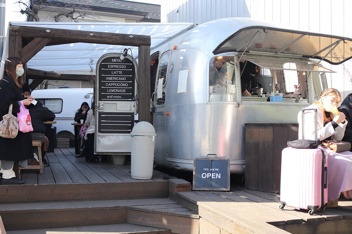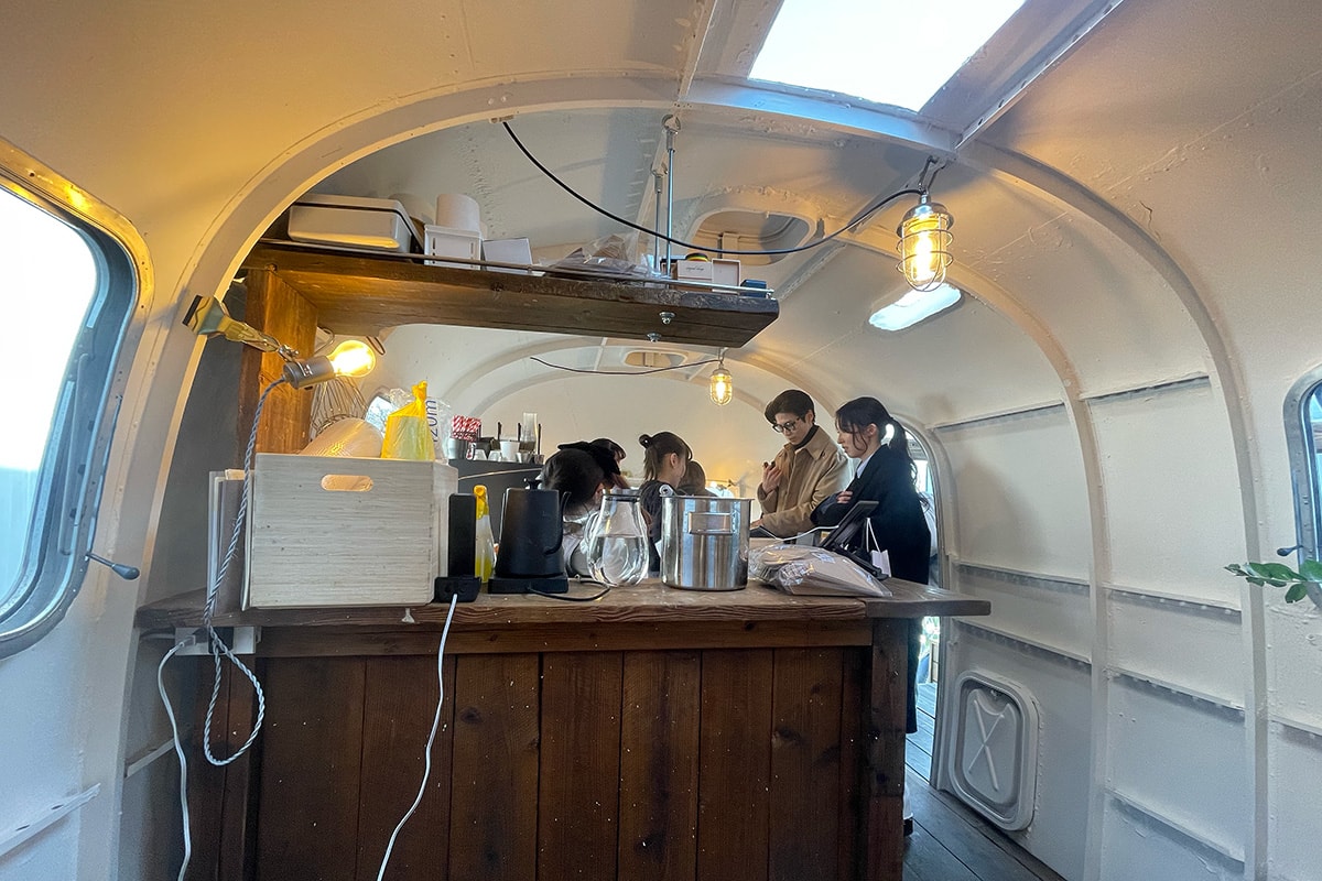 表参道ヒルズの裏路地を進み、左手に見えてくるゆるやかな坂の途中に店舗はある。キッチンカーのようにも見えるが、ここは常設店。テラスに3つ、そしてトレーラーの中に2つのテーブルがあり、小さなベンチも用意されている。この日は少し肌寒かったので、トレーラー内のテーブル席へ。