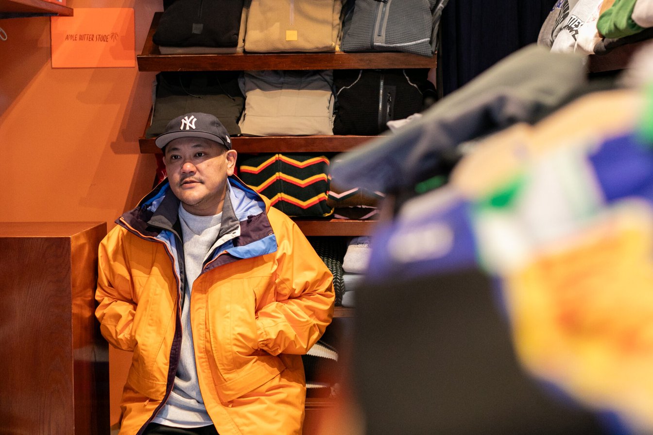 福岡の中心地・天神でストリートブランドを中心に扱うセレクトショップ「APPLE BUTTER STORE」。福岡生まれ福岡育ちの店主・和泉慎也さんがセレクトした国内外の気鋭ブランドが数多く並び、福岡県外からファンが訪れる。古着バイヤーの経歴も持つ和泉さんだが、店で扱うブランドの選定理由は「自分の感覚でカッコいいと思うかどうか」と単純明快だ。国内ブランドだけでなく海外ブランドとのコラボレーションやポップアップ企画も多数仕掛けている和泉さんに、福岡で店を出すことのこだわりや、ブランドとコラボする際のポリシーを聞いた。