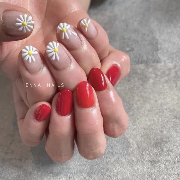 他にも、ぐるっとデイジーを囲むデザインなども個性が光るフラワーネイルなので、ぜひトライしてみて。