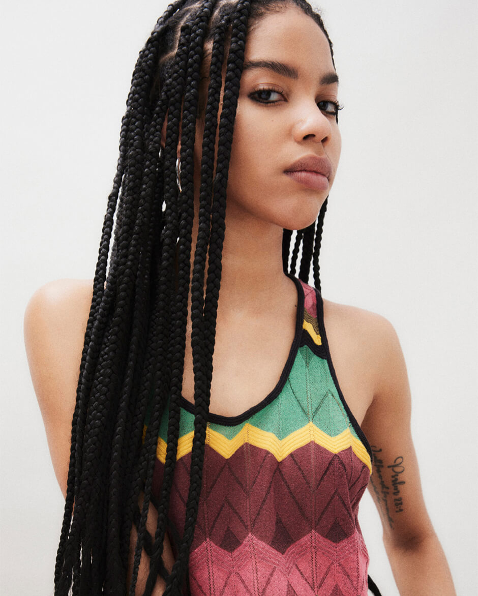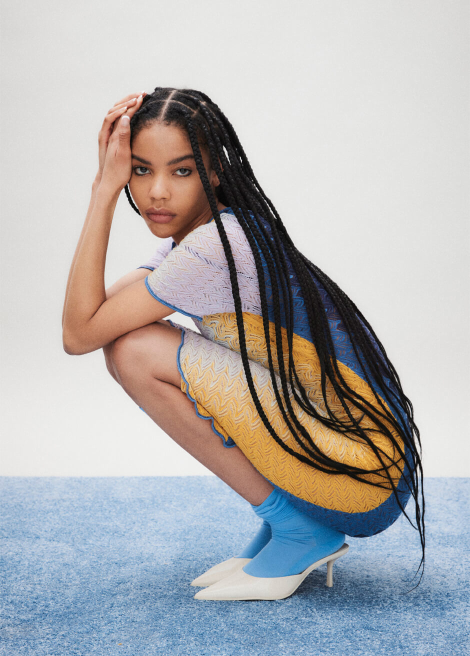 dress by MISSONI, socks by FALKE, shoes by ZARA