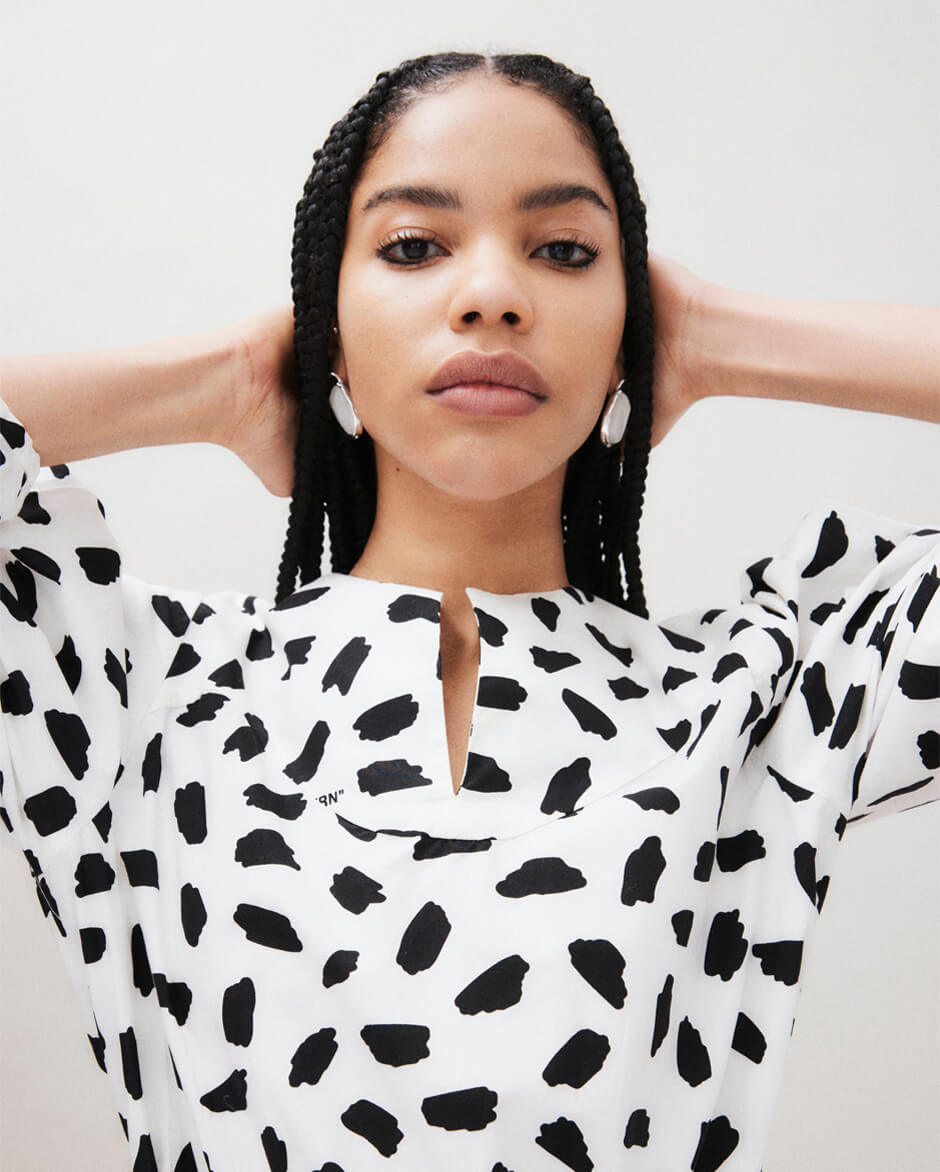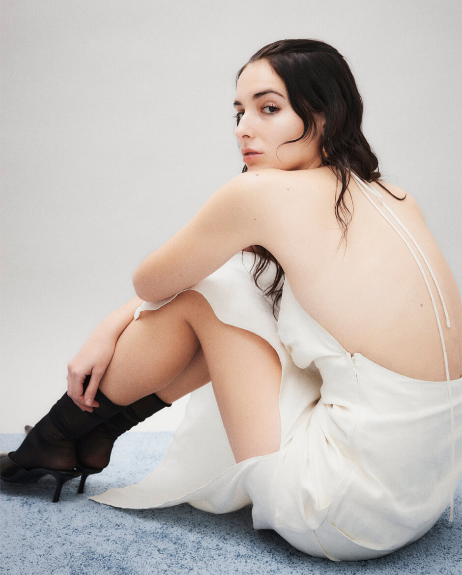 dress by JACQUEMUS, socks by FALKE, shoes by ZARA, earrings by H&M