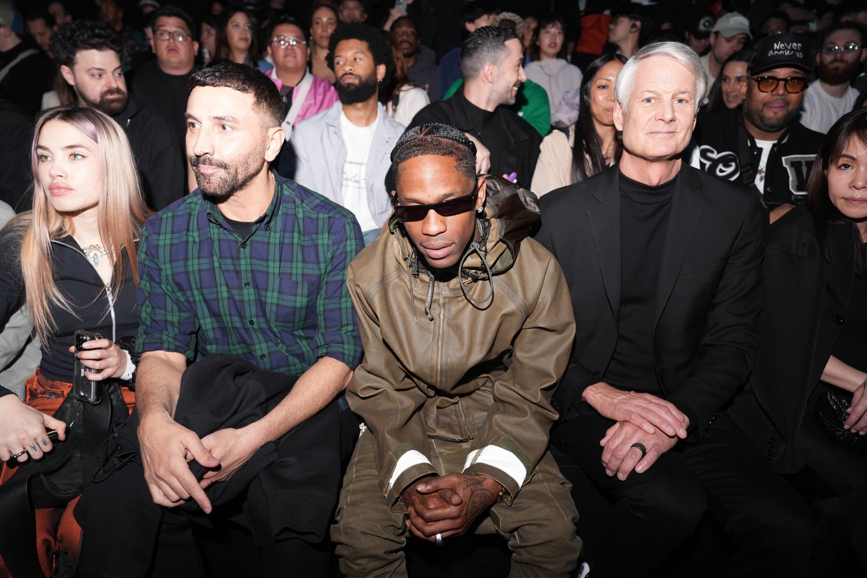 トラヴィス・スコット(中央)とジョン・ドナホーCEO(右)