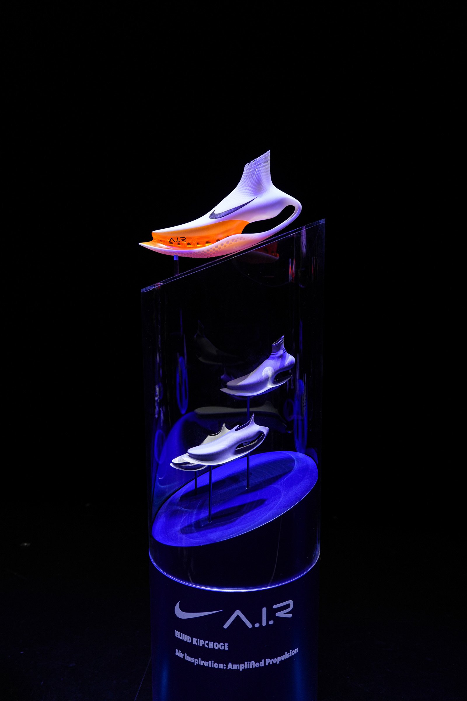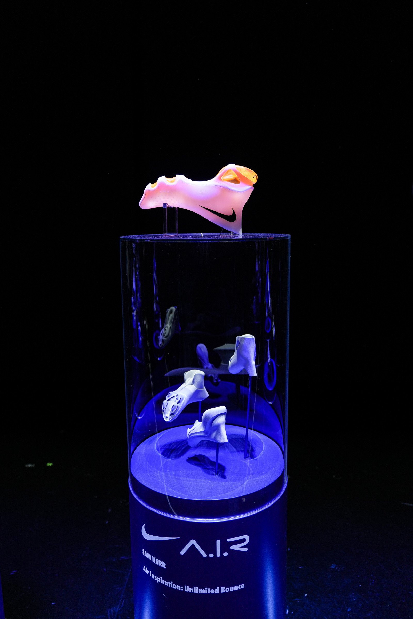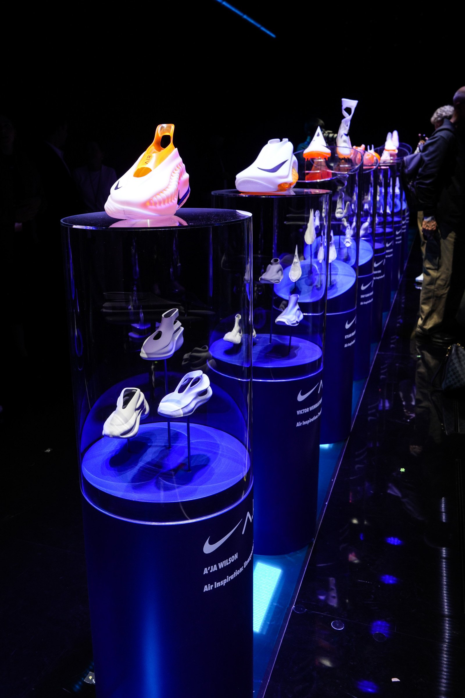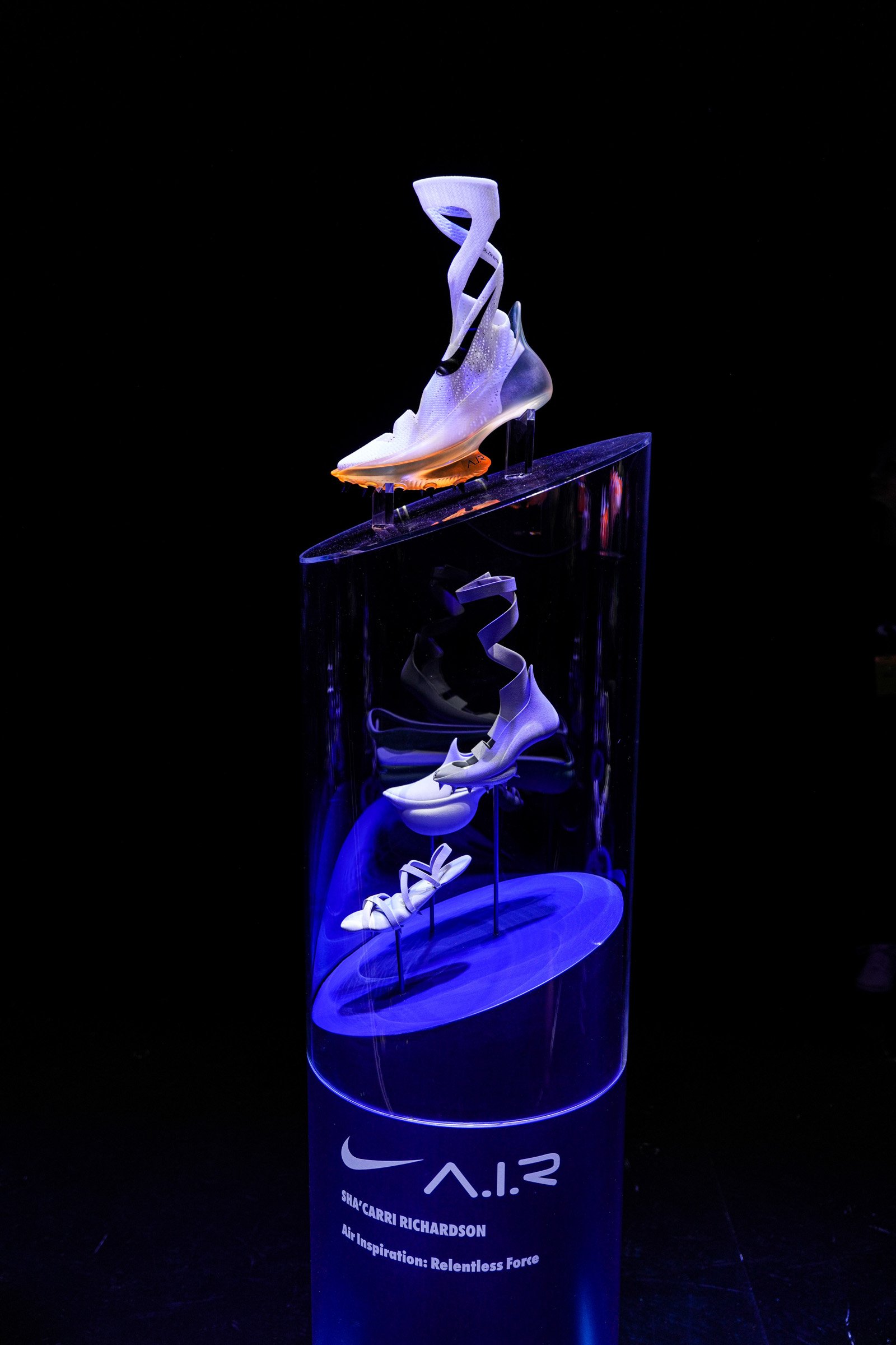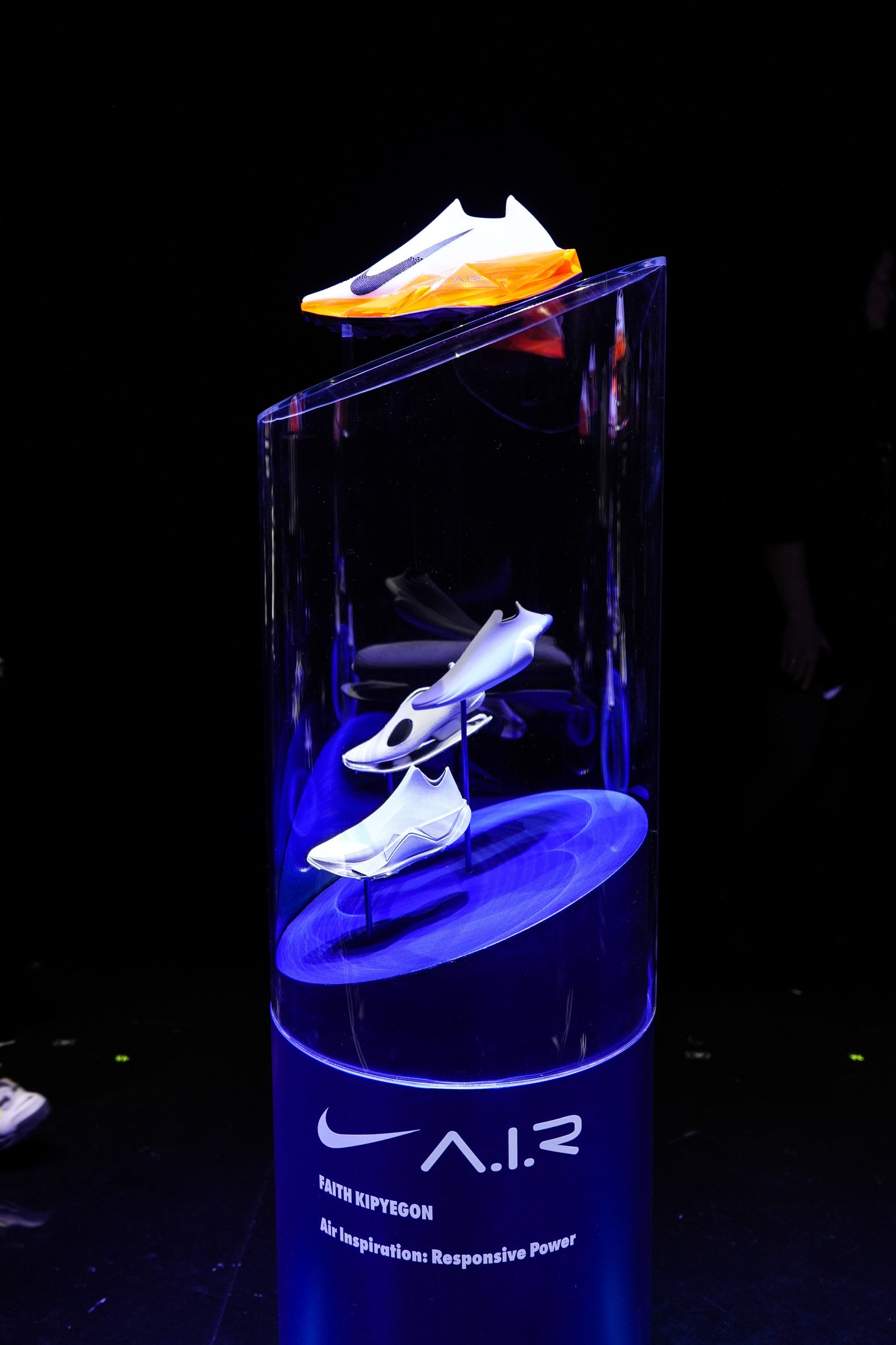 ショー終了後は、パリ・サンジェルマンFC(Paris Saint-Germain Football Club)所属でフランス代表のキリアン・サンミ・エムバペ・ロタン(Kylian Sanmi Mbappé Lottin)ら世界最高峰の13人のアスリートとの共同開発プロジェクト「A.I.R(Athlete Imagined Revolution)」で作られた作品を公開。「ナイキ スポーツ研究所(Nike Sports Research Lab)」のデータやAI、3Dプリントを活用しながら、アスリートのクリエイティブな才能を掛け合わせ、「Nike Air」を用いた未来のパフォーマンスフットウェアを提案した。