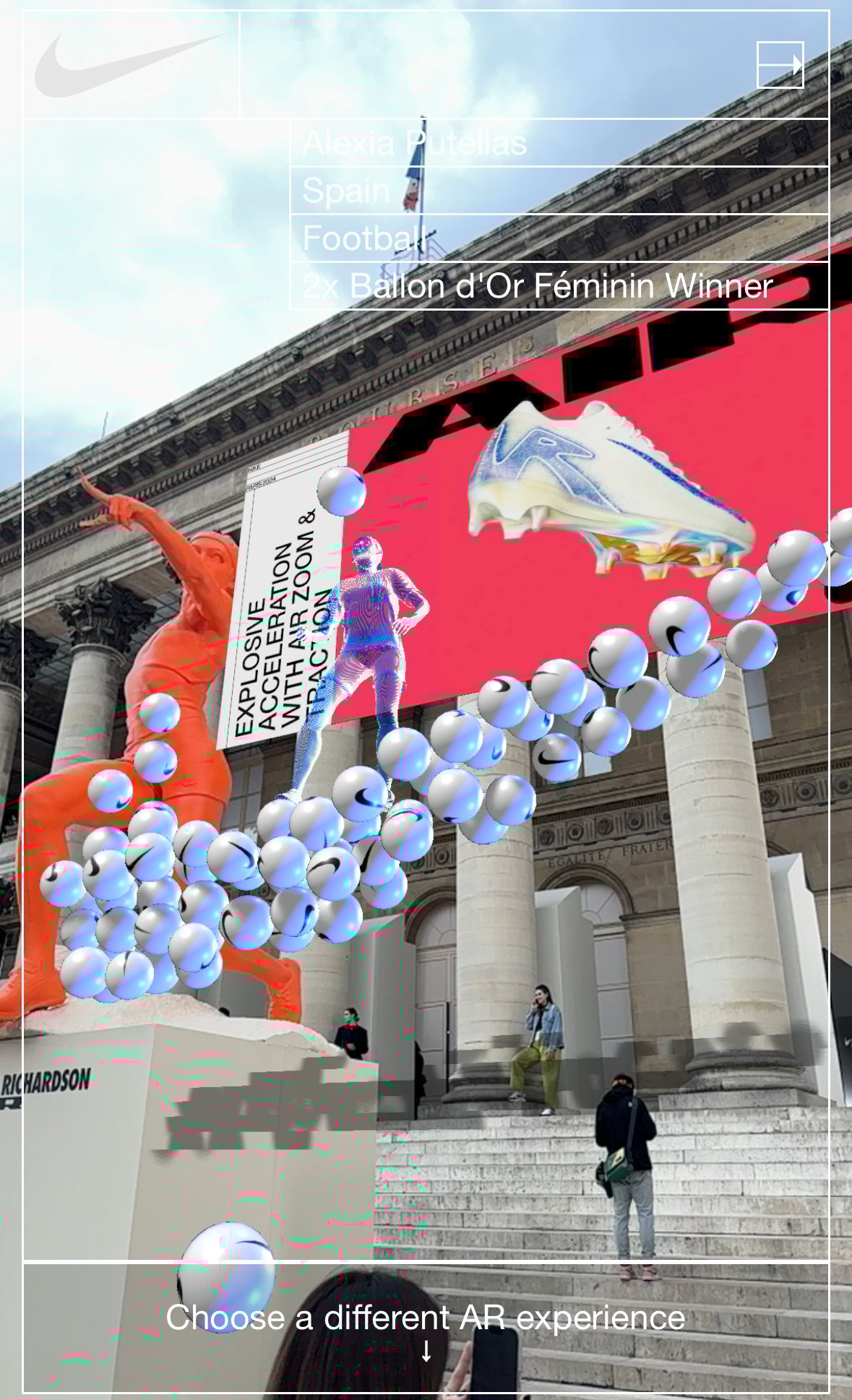 ショーは、「ナイキ ペガサス 41」やペガサスシリーズの上位モデル「ナイキ ペガサス プレミアム」などを披露したNike On Airの一環で開催。会場となったブロンニャール宮殿のエントランスでは、レブロン・ジェームス、アレクシアプテラス、ベベ・ヴィオ、キリアン・ムバッペ、シャカリ・リチャードソン、ビクター・ウェンバンヤマの6人の選手をモチーフにしたオレンジ一色の彫像を設置。高さ8〜11メートルの巨大な彫像は、いずれもQRコードを読み込むとそれぞれの功績を称えたARが表示された。