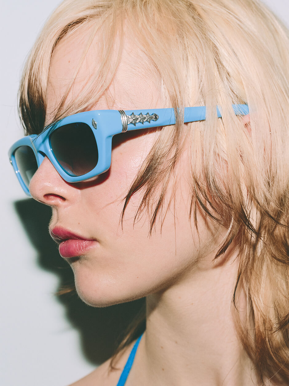 bikini top ¥66,000 by CHROME HEARTS + DIPPED IN BLUE and eyewear ¥213,400 by CHROME HEARTS CHROME HEARTS TOKYO