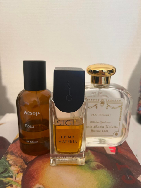 chloe:フレグランスは季節ごとに使い分けていて、春夏は軽やかな「サンタ・マリア・ノヴェッラ」の『ポプリ』、秋冬は「SIGIL(シジル)」のスモーキーな香りの『PRIMA MATERIA』を使っています。