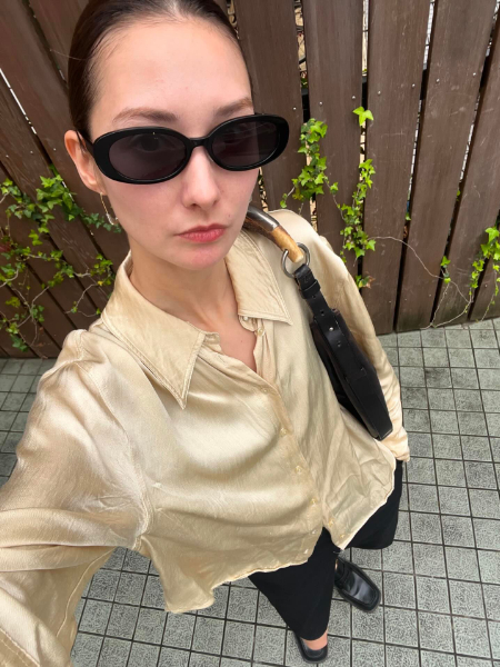 他にも、小さめのシャツからお腹をちら見せするなど、抜け感を出したくてメンズライクな格好でもワンポイントで肌見せするようにしています。