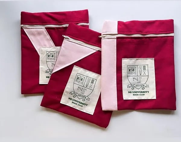 “架空の大学の読書クラブ”という設定のもと、定番で制作している「ブックポーチ」に加えて、架空のクラブグッズバージョンを展開するといいます。