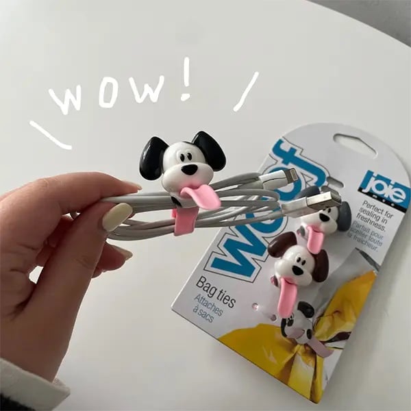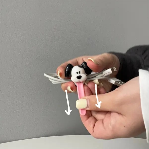 愛くるしい犬が、コード類をしっかりまとめてストレスから解放してくれます。