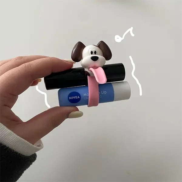 犬の口から舌を引っ張り出すと、輪っかになって束ねられる仕組み。かわいすぎるデザインに釘付けです…!