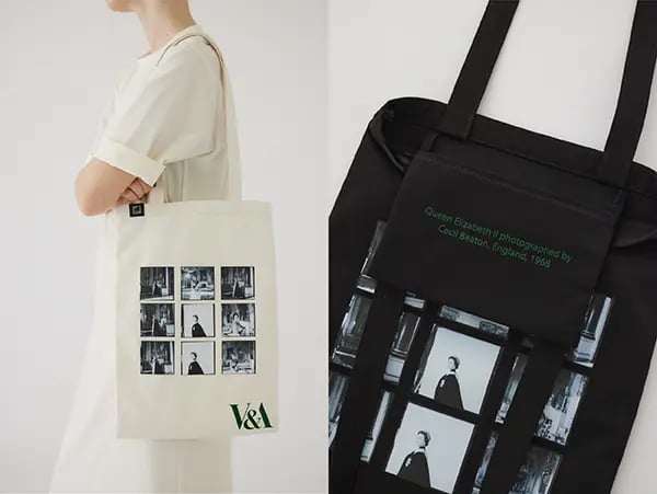 本コラボーレーションでは、エリザベス女王2世を撮影した写真からインスピレーションを得ている、トートバッグとブックカバーの2種類を展開しています。