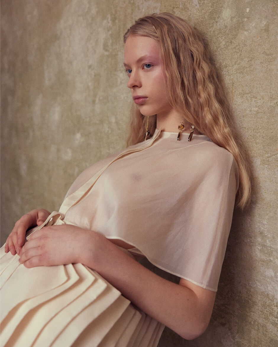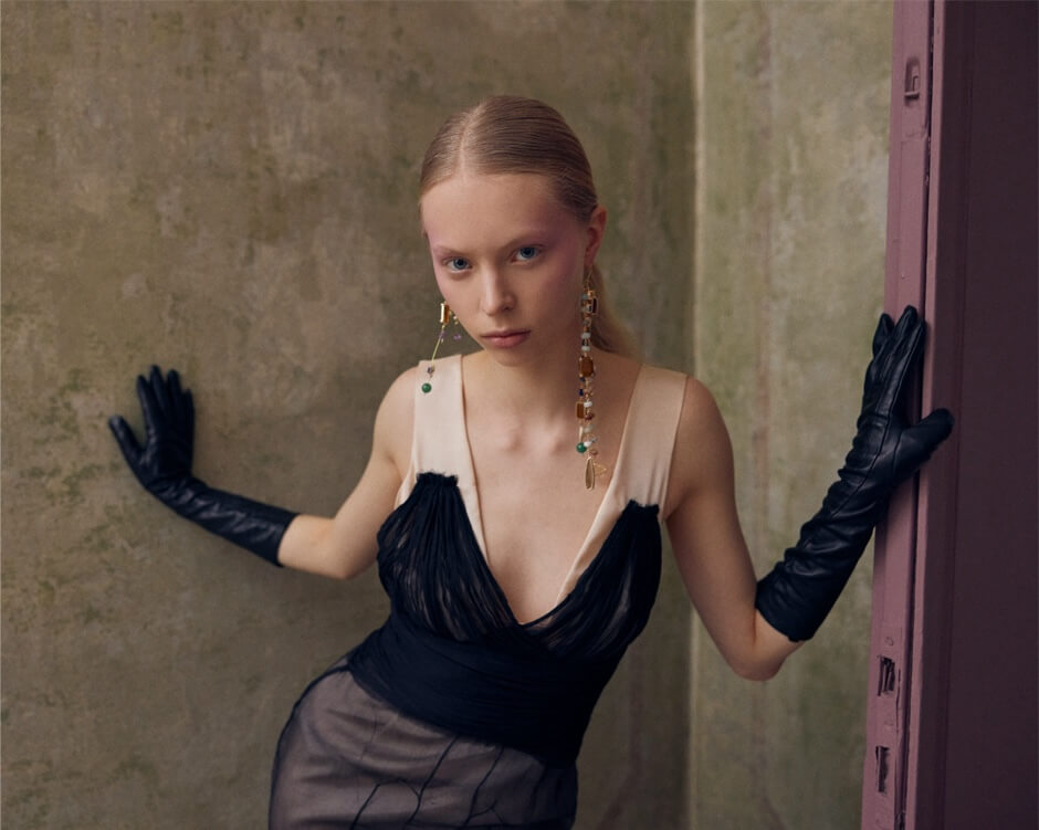 dress by ALESSANDRO DELL’ACQUA, earrings by ERMELINDA, gloves stylist's own