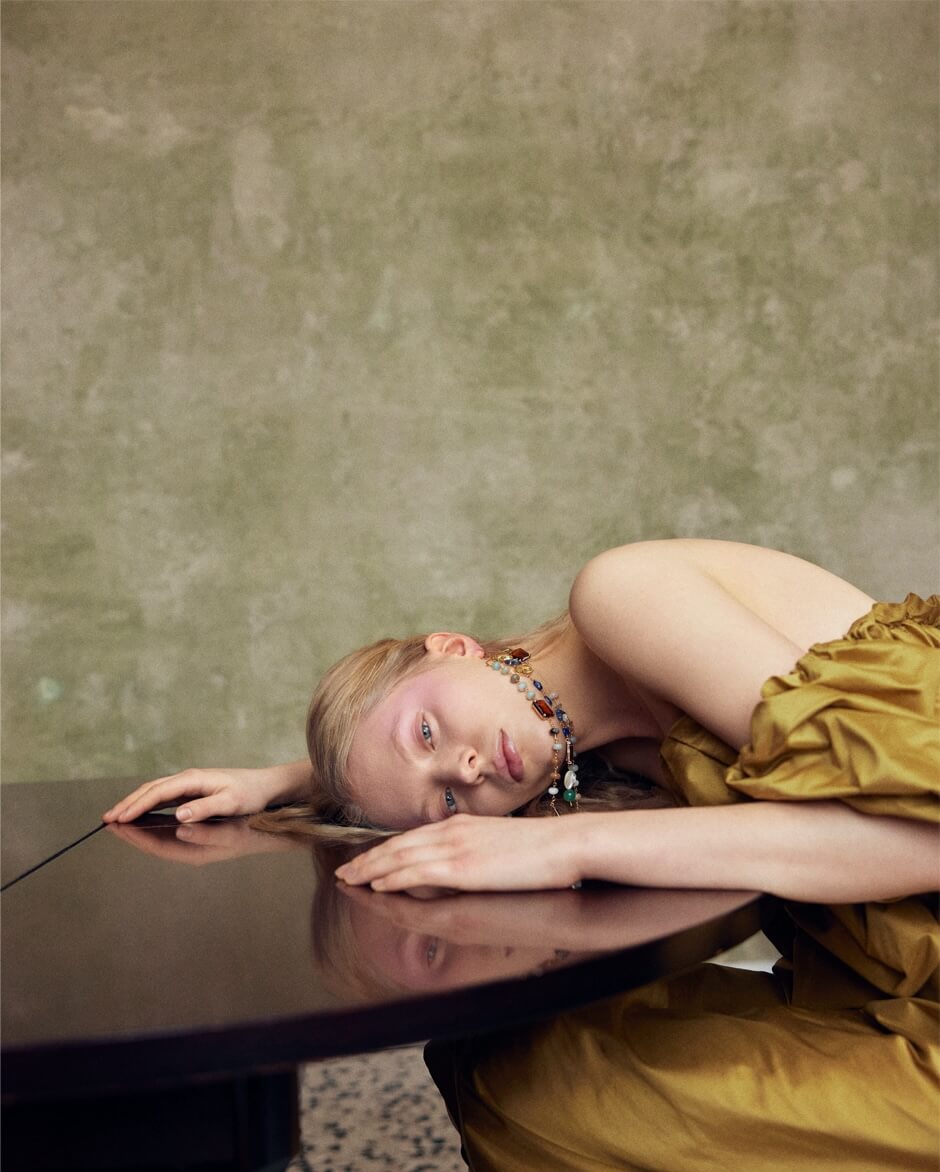 dress by ALBERTA FERRETTI, single earring by ERMELINDA, necklaces by GABBI MILANO