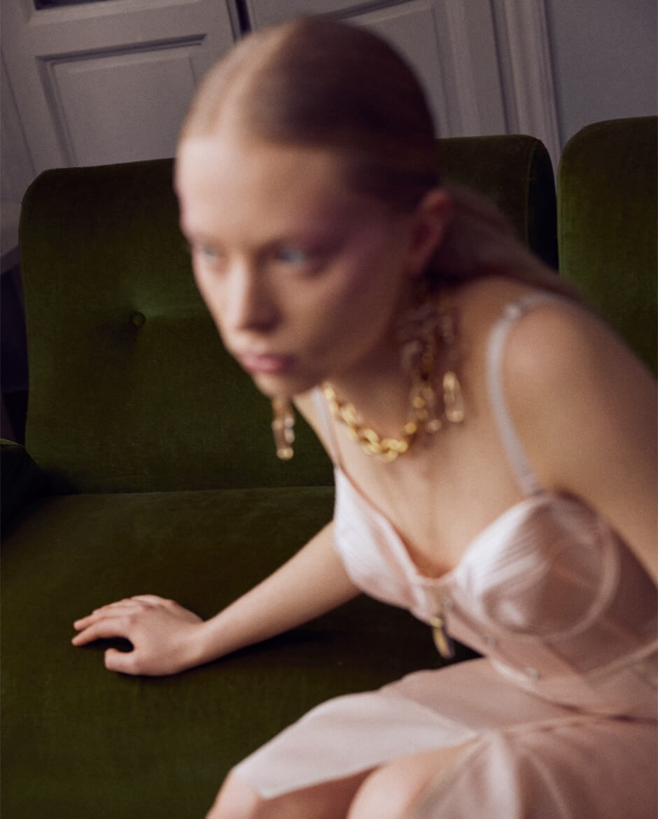 Macro details and close-ups wants to underline the continuity between a contemporary woman/witch and vulnerable, tied into tight corsets and millions of laces, covered in rhinestones amulets and golden talismans.