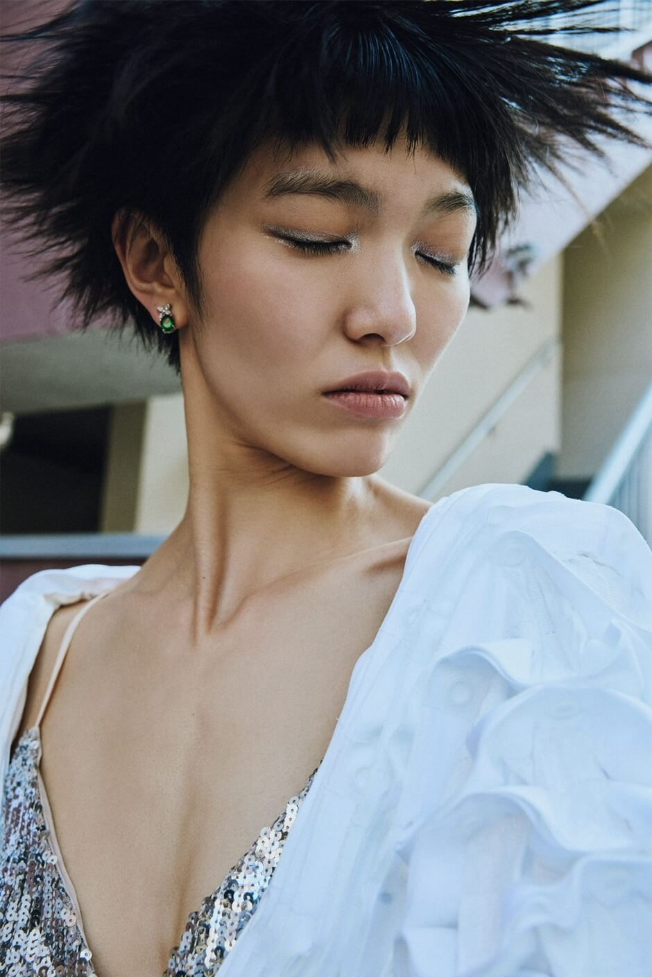 Image by: jacket by REI SHIRAKAWA, shoes by LOUIS VUITTON, bra, skirt, shorts and earrings stylist’s own