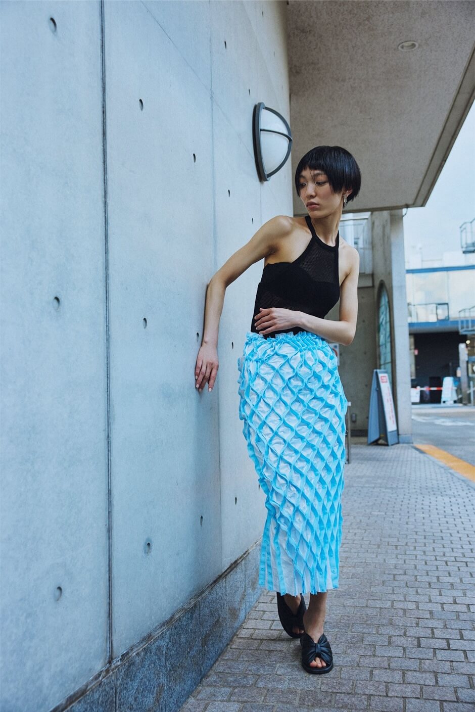 Image by: skirt by REI SHIRAKAWA, sandals by BALENCIAGA, top, bra and earrings stylist’s own