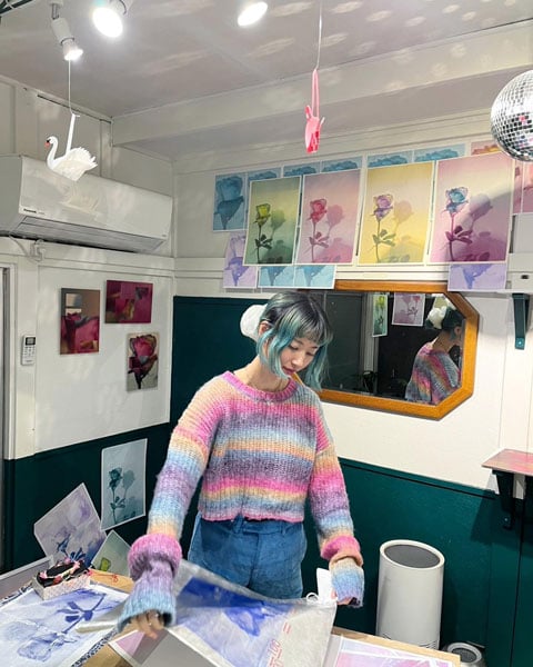 madoka:商品のパッケージデザインなどを手がけるグラフィックデザイナーの仕事をメインに、美容院兼ギャラリーのある場所でパートタイムの仕事をしつつ、空いた時間で自分の作品を作っています。