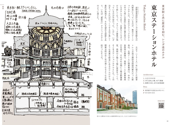 東京駅と共に歴史を刻む、レンガ造のホテル、東京都「東京ステーションホテル」のほか、漁業が栄えた明治時代の雰囲気をよく残した、茨城県「平潟港温泉 砥上屋旅館」、日本の湯治文化を堪能できる秘湯の一軒宿、栃木県「北温泉 北温泉旅館」、昭和初期の姿をとどめる貴重な浴場が必見の、群馬県「四万温泉 積善館」などが掲載されている。
