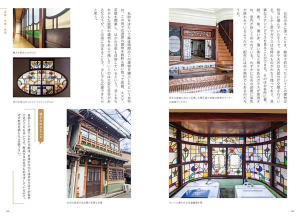 各地域の宿紹介の合間には、「宿の建物用語を学ぶ」「宿の変遷を辿る」「宿の照明に注目してみる」「宿泊の作法を心得る」といったコラムを掲載。コラム「まだまだある!全国のレトロ宿」には、35選に入らなかったレトロ宿も載っている。