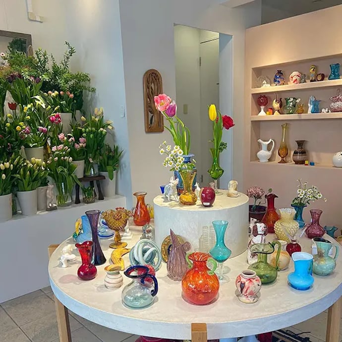 PART OF NATUREではお花だけでなく、ヴィンテージもののフラワーベースが販売されています。オンラインショップでは、食器やインテリア雑貨なども扱っていますよ。
