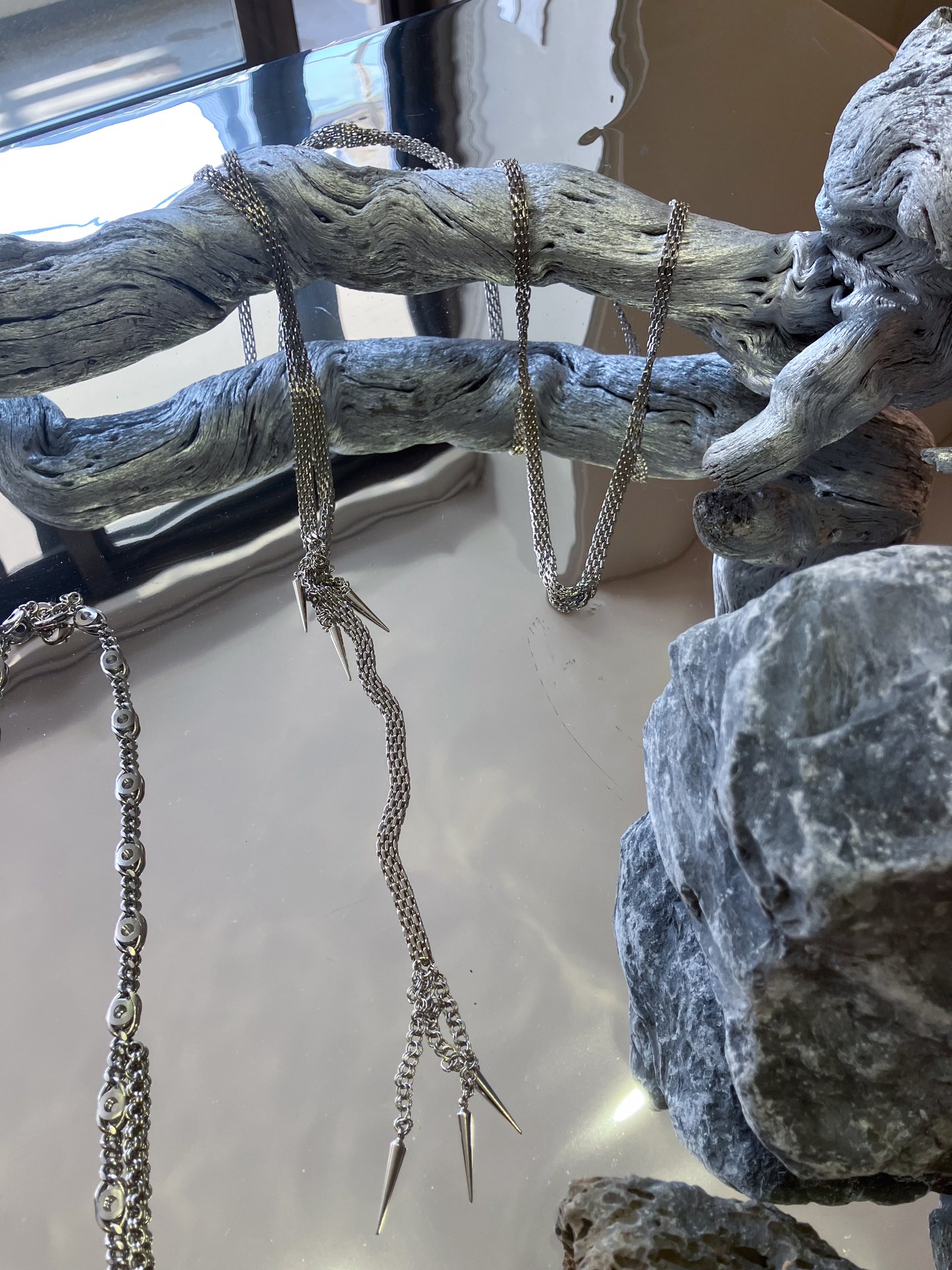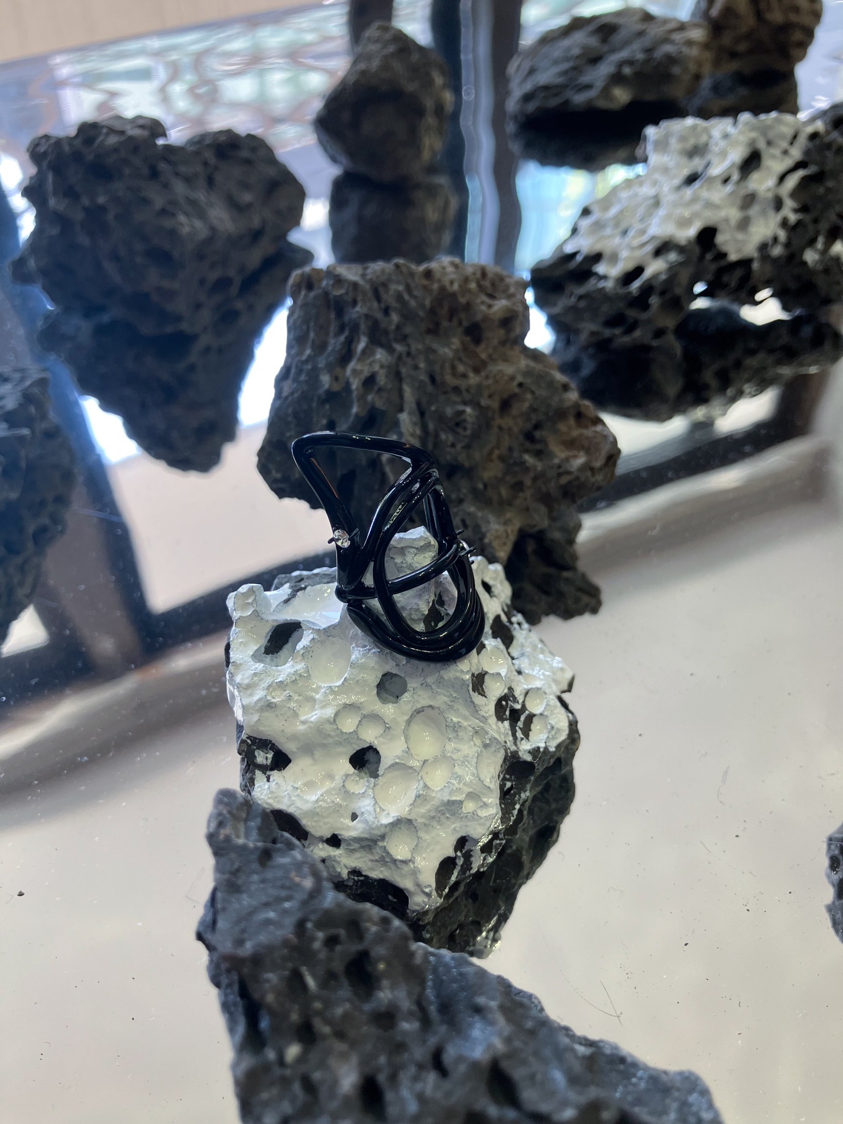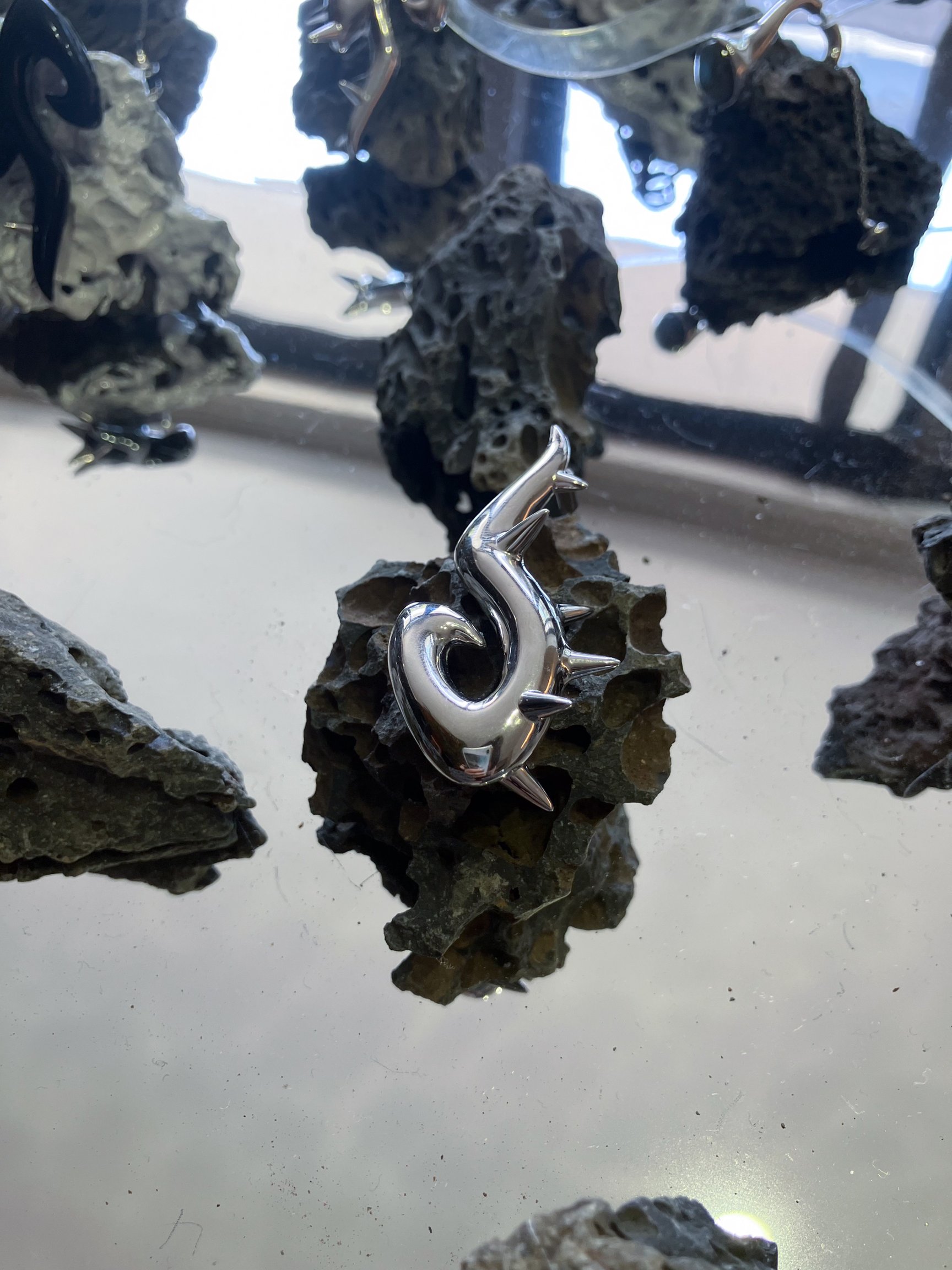 以前から音楽好きで、プライベートでも国内外の音楽フェスやライブなどを楽しんでいるというデザイナーの春井は、「これまでのようなファインジュエリーではなく、フェスやライブといった音楽シーンにも映え、踊る際にも気兼ねなく着用できるジュエリーを作りたいと思った」と新ライン始動の理由を説明。アイテムは、空想上の花や植物の棘、水で「R」の文字を描いたような流線形のモチーフなど、ユニセックスで有機的なデザインのリングやピアス、ブレスレット、ネックレスなどをラインナップしている。
