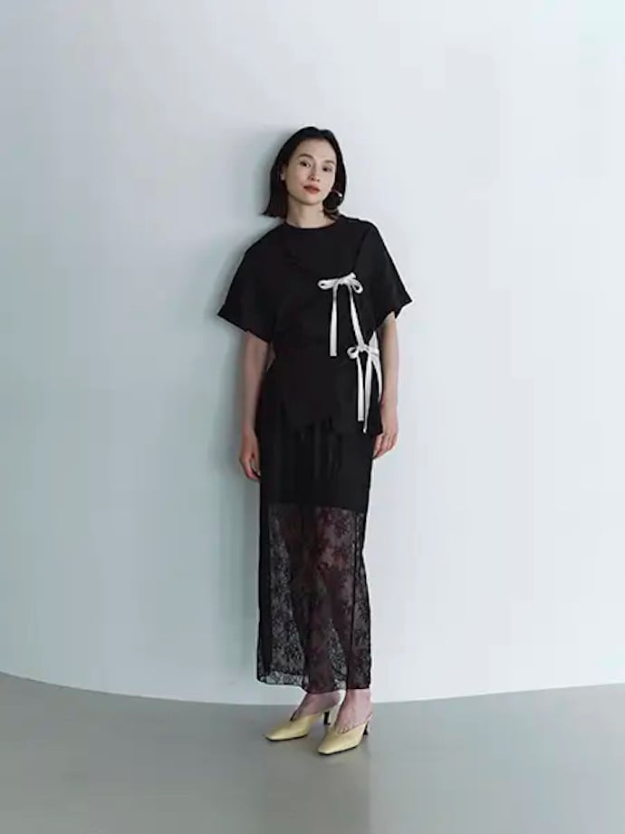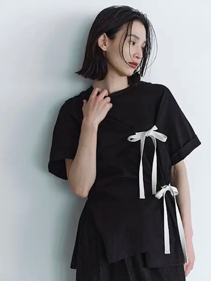 「オーガニックコットンリボンアシメトップス」(税込5995円)は、アシンメトリーにキュッと結ばれたリボンが特徴。