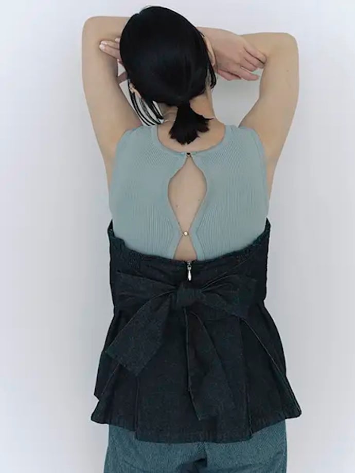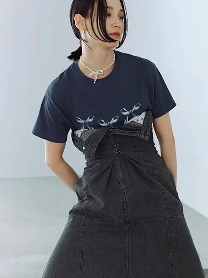 「2WAY リボンデニムビスチェ」(税込1万9800円)は、左右に付いたリボンを前後どちらに結んでもOKな2way仕様。気分やシーンに合わせて、大きく異なる雰囲気を楽しめちゃいます。