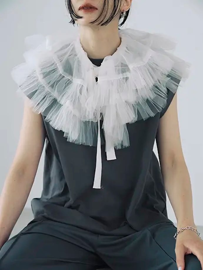 日本のファッションブランド「VIVIANO(ヴィヴィアーノ)」とコラボした「ギャザーチュールカラー」(税込2万5300円)は、ボリューミーなチュールがおしゃれ…!