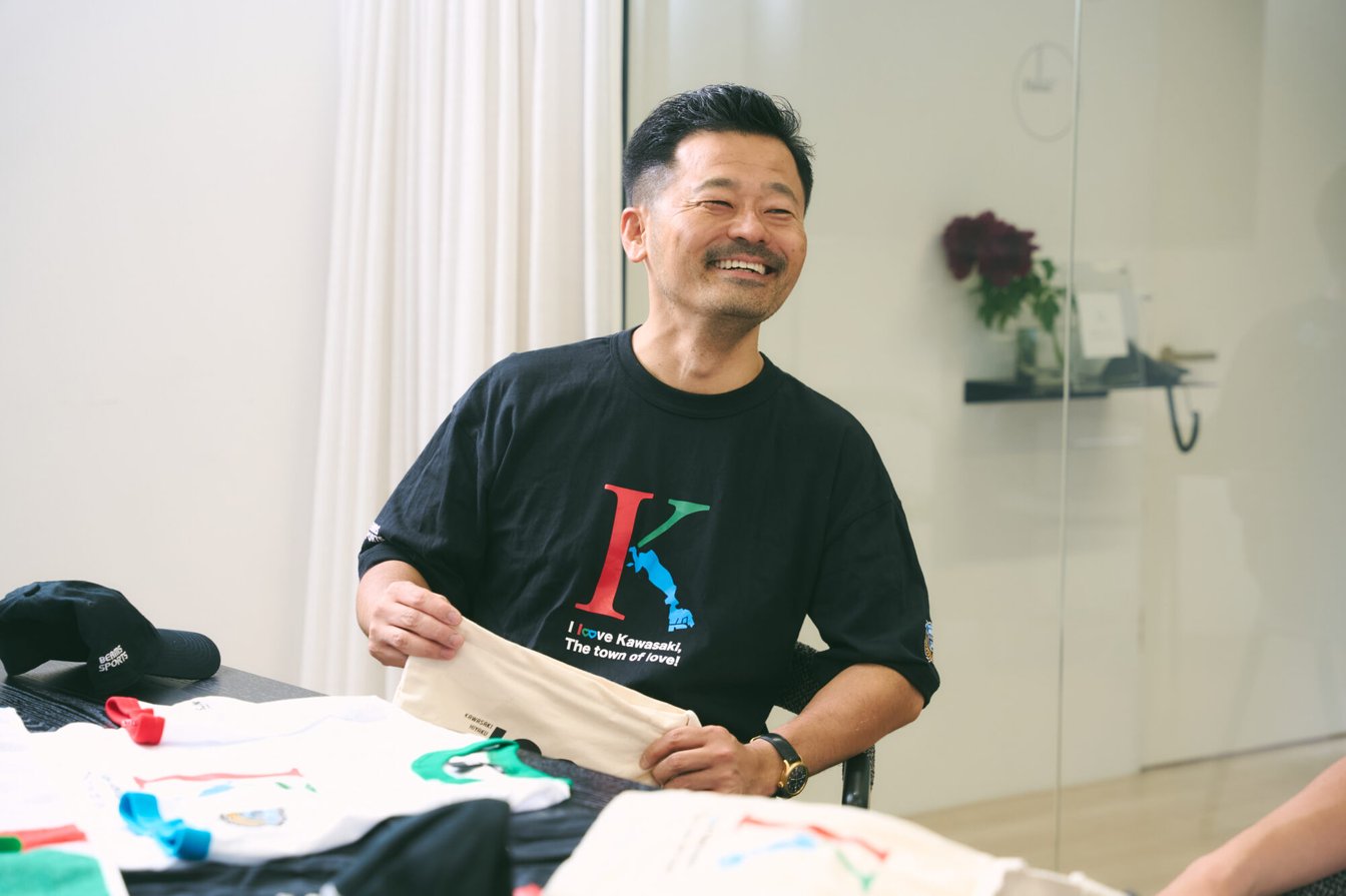 佐野明政さん(以下:佐野):2023年9月ごろ、天野さんから「かわさき飛躍祭」の構想の話をお聞きしたのですが、まずネーミングが、100周年の「100」と「飛躍」をかけるという、まさに天野さんらしい発想だと思いました。また、天野さんからは「川崎の若者にシビックプライドを持って欲しいし、市民にももっと川崎を好きになってもらいたい」という想いを聞き、まず個人的に興味を持ちました。その後、正式に「BEAMS SPORTS」のチームでプレゼンテーションを受け、デザインサポーターを担当させていただくことになりました。