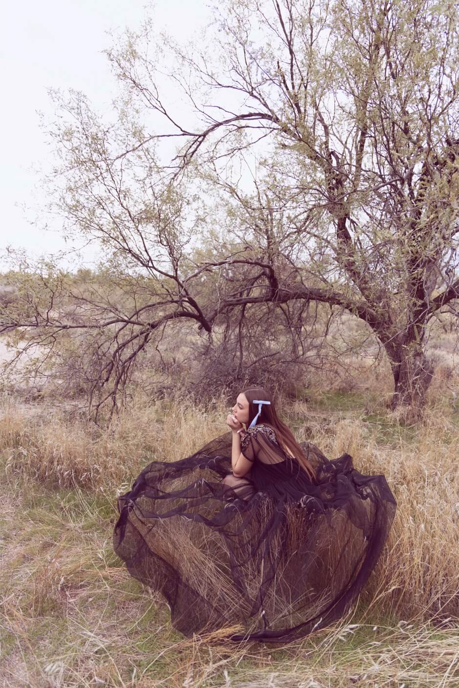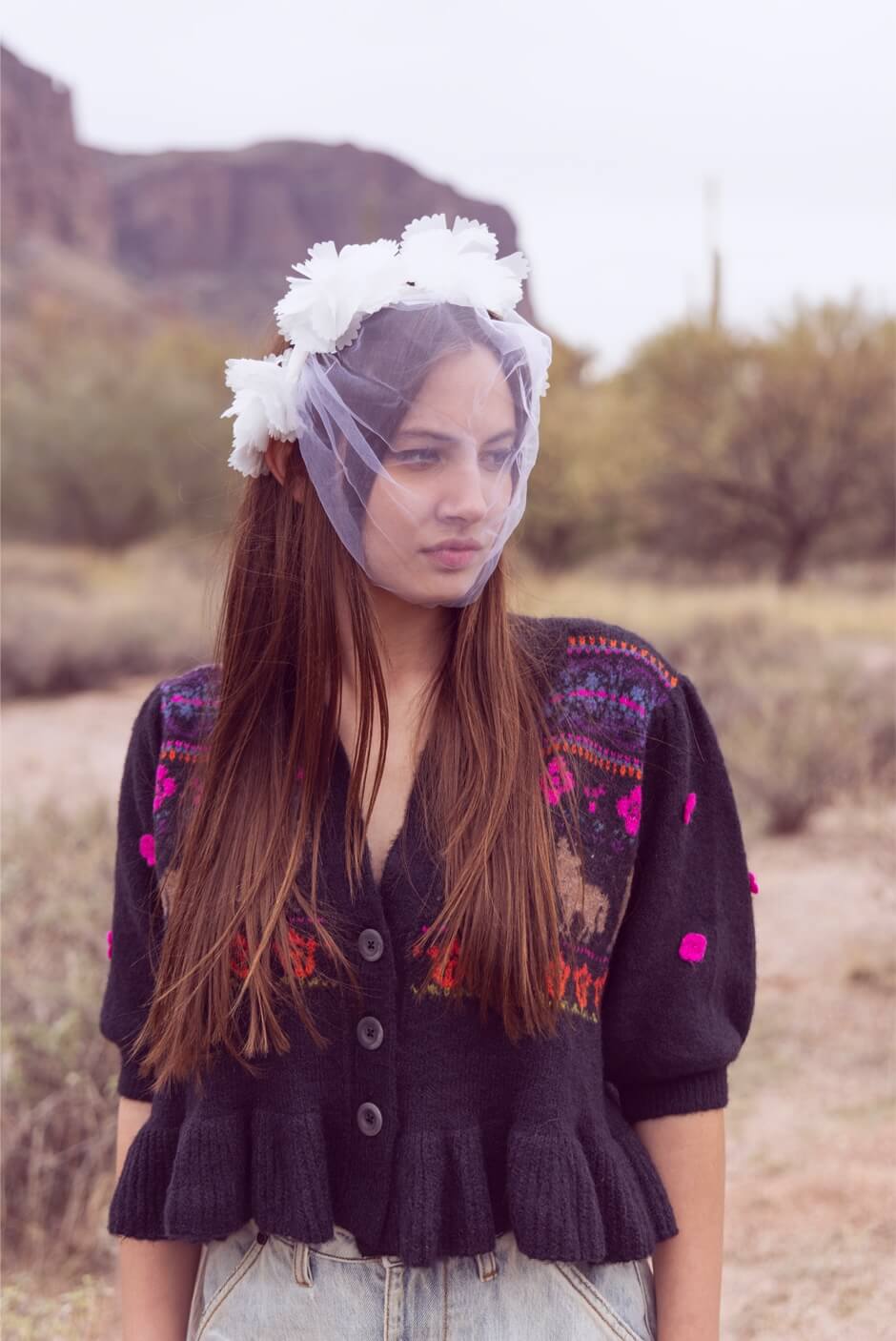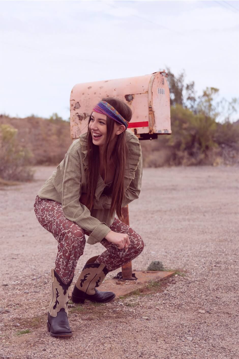 top by FREE PEOPLE, skirt by ONE TEASPOON, boots by BOOTSTOCK, headdress by FOR LOVE & LEMONS