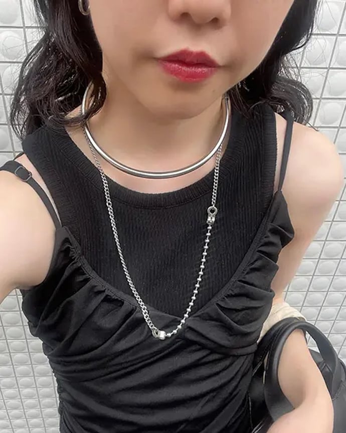 さまざまなタイプのチェーンやパイプ型のネックレスがあるから、重ね付けするスタイルがおすすめ!タンクトップやTシャツなどカジュアルなファッションに追加するだけで、おしゃれにきまりますよ。