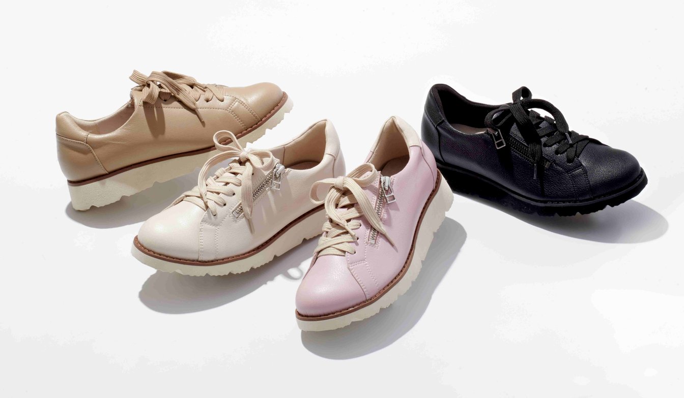 「ハルメクの靴」はデザインのバリエーションがあり、今年3月中旬時点で約25型を展開。スニーカー(タウンシューズ)が中心だが、ゴアブーツやパンプスなども手がける。