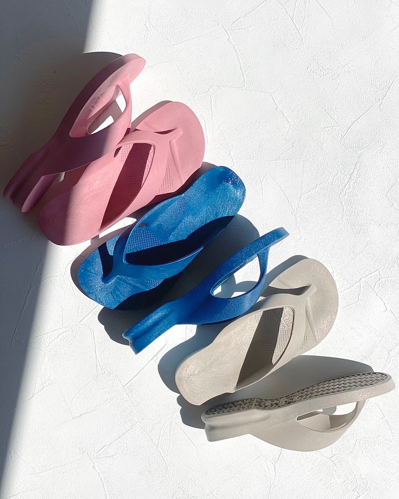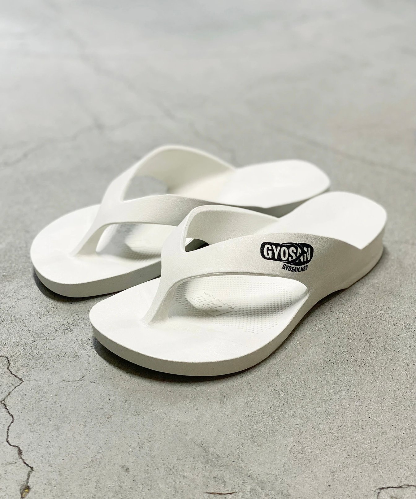 もともとギョサンは、1960年代後半にPVC樹脂を使った一体成型サンダルとして奈良県などを中心に製造されるようになりました。70年代に小笠原諸島で販売されるようになると、「丈夫で長持ちする上にスベらない」ことが評判となり、島民に愛されるようになったといいます。