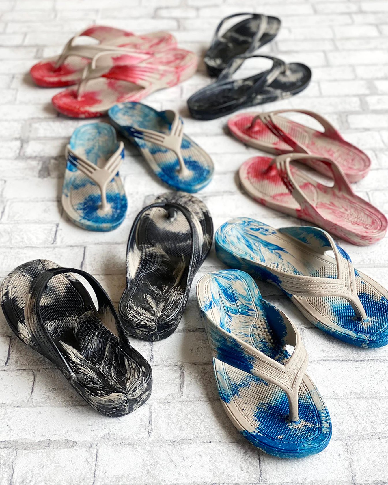 あとは、「手染めギョサン」も、ぎょさんネットでカラーをデザインし、私が染色しております。手染めなので価格はギョサンにしては高めですが、大変好評をいただいております。