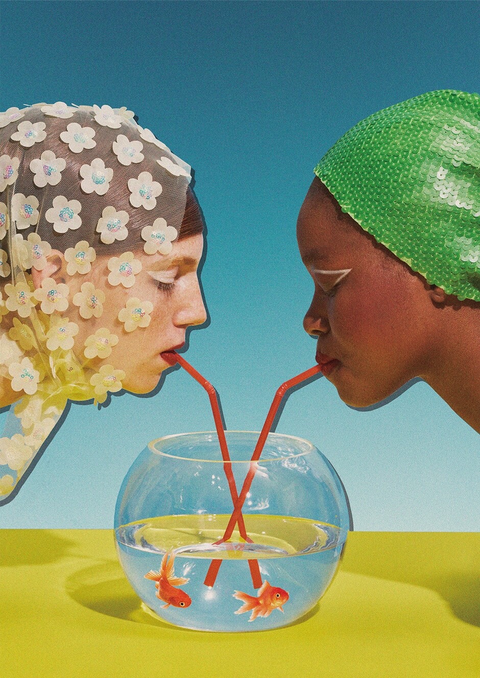 Inspired by surreal and pop art magazines and earlier fashion advertisements, we made this work, consciously thinking of intense colors and graphical composition.