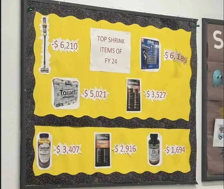 巨大掲示板のレディット(Reddit)でスタッフルームに貼り出された「2024年度トップ・シュリンケージ・アイテム(Top Shrink Items of FY24)」の画像が掲示され議論を呼んでいる。