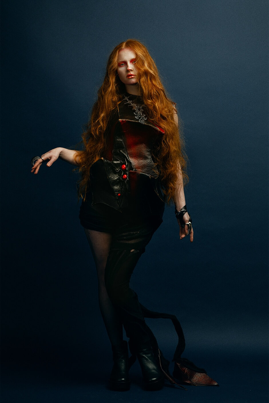jacket, dress and headdress by JESSIE VON CURRY, boots by ISSA EAKIN