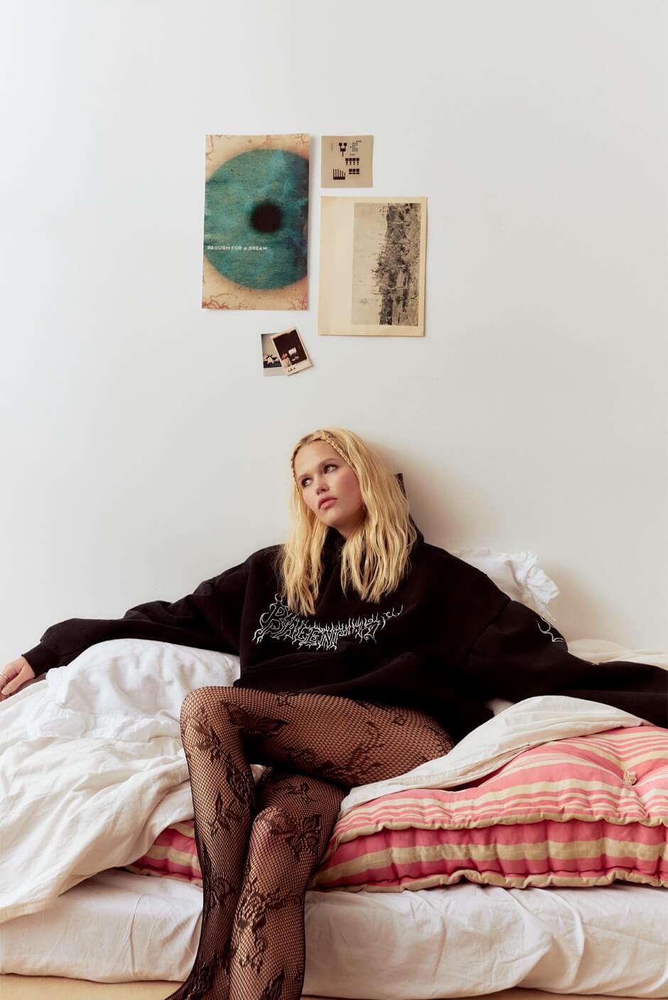 top by BALENCIAGA, rings by NAIDA C. CASTEL, tights stylist’s own