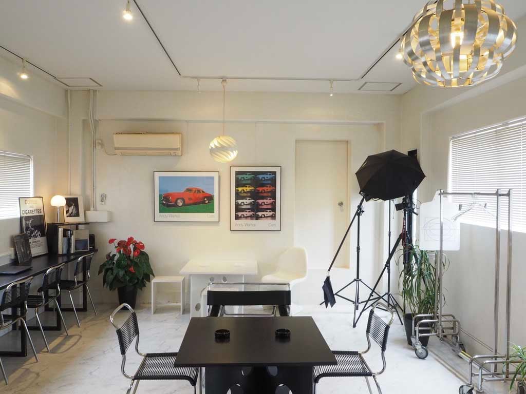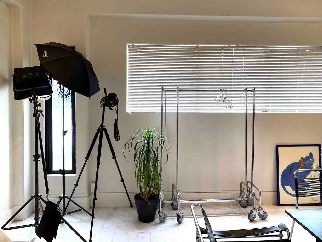 撮影機材らしきものを発見。話を聞くと、物撮りなど簡単な撮影もここの事務所で行っているとのこと。