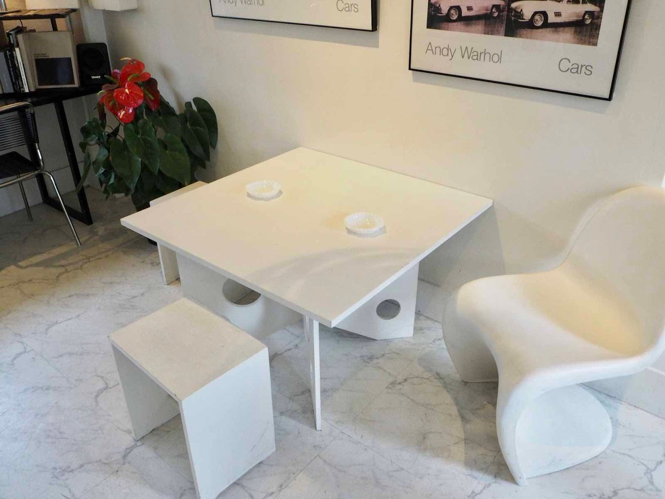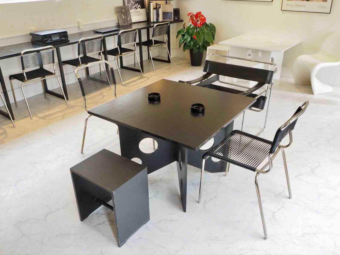 壁側に置かれた長テーブルもバウハウス的な発想で、どこから見ても均等な四角になるように作られています。
